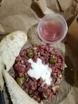 Эти 2 звезды только за интерьер. Драть такие деньги 650р за тар тар из говядины и 420р за тар тар из гребешка а принести то что на фото это вообще перебор. Заказывали с собой а дома ах..ли по русски говоря. Из говядины тар был вообще без вкусный 🤦‍♀️не соли.не перца.вкус как моченая туалетная бумага. Размер порции видно тк рядом специально поставила баночку из под кетчупа. Про тар из гребешка вообще ужас. Как такое можно подать?! Ладно в банке из под кетчупа❗ но в ней нет даже половины банки а заказ ждала с ним минут 20 видимо в море бегал ловил этого гребешка. Размер просто чайная ложка. Потому и не написана грамовка не одного блюда в меню☝️Зато льда наложили от души видимо прикладывать ко лбу чтоб не закипеть от увиденного. Ужас ужасный. Хотели вечером пойти посидеть но после увиденного что взяли с собой однозначно нет.