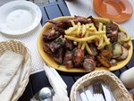 Еда очень посредственная, очень огромная очередь так как в парке более нет места посидеть и покушать! Путаница в столах официанты или путают или не доносят заказ . Сегодня там кушали принесли лаваш когда уже съели шашлык и это был не лаваш а сухие чипсы из лаваша вообщем не стоит идти в данное заведение ждать заказ 1ч и потом ещё кушать не вкусную еду за большие деньги.