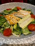 С салатом из свежих томатов и рукколы, заправленным соусом песто