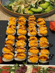 НЕ РЕКОМЕНДУЮ К ПОСЕЩЕНИЮ ЭТО МЕСТО! Не понравился сервис заведения от слова совсем! Сотрудники двигали мебель при гостях и очень громко. 2 сотрудника на баре играли в волейбол воздушным шаром, тоже очень громко, стол липкий, подали пиво намного раньше, чем основное блюдо, оно стояло выветривалось, при чем даже не спросили, подавать сразу или с блюдом. Основное блюдо ждали 40 минут (пара пришла позже нас, ей принесли блюда, они поели и ушли, а мы все еще ждали роллы). Тарелки, которые нам принесли, были мокрые. Роллы - ужас: рис переваренный, роллы разваливались, очень странно, что в Филадельфию добавили угорь, да и рыба в целом с привкусом странным была. Большинство десертов отсутствует. Сидеть было неприятно, посторонние звуки, невкусная еда разочаровали.