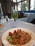 Были в июле, в не жаркую погоду. Уютный просторный семейный ресторан. Симпатичный дизайн интерьера и хорошее освещение. Нигде не дует, комфортно. Внимательный и доброжелательный персонал. Туалет - просторный, интересный дизайн интерьера. Есть комната для пеленания. Стоянка рядом. Единственное, что хотела бы добавить, как архитектор: я бы сделала главный вход в ресторан не через стоянку автомобилей (так как пересекаются пешеходы и авто), а с угла Блюхера и Кушелевской дороги, либо с Блюхера, но примерно в середине длинного ограждения. Кстати, этот "забор" скрывает красивый фасад самого ресторана, что тоже не очень смотрится с проспекта. В ресторане очень вкусно готовят, разнообразие блюд различной кухни. Большой выбор напитков. Цены на некоторые позиции немного выше средних. Несмотря на это, людей много даже по будням. Спасибо за обслуживание! Придем ещё!