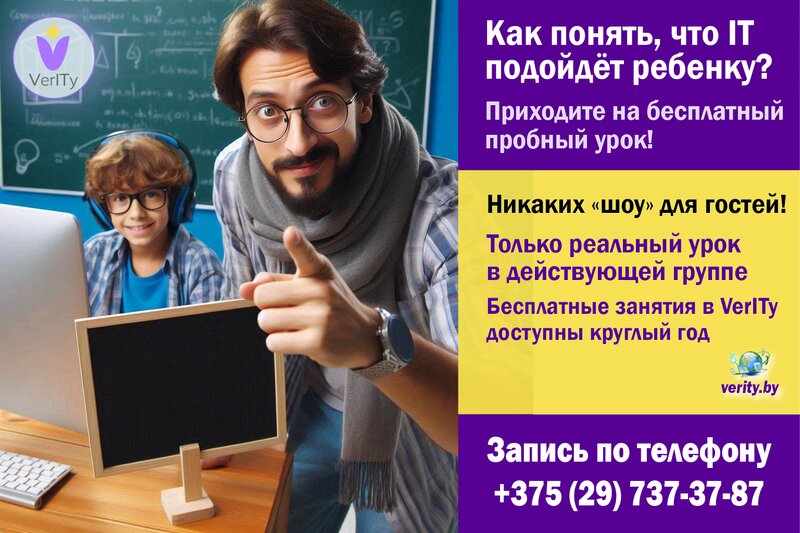 🔥 Познакомьте своего ребенка с IT в VerITy. Запишитесь на бесплатное пробное занятие сегодня! 🤘 Бесплатные занятия проводятся для детей 7...