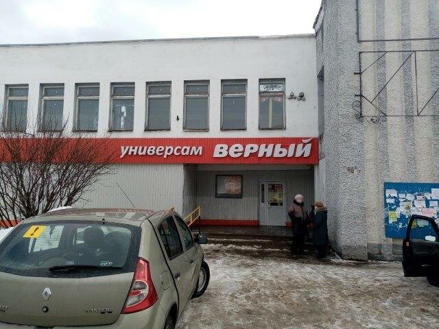 Типичный продуктовый магазин сети "Верный". Присутствует стандартный ассортимент продукции, характерный для этой сети. Продукты свежие, цены средние для города. Персонал вежливый. В магазине достаточно чисто. Рядом расположена большая парковочная зона. Перед входом находится остановка общественного транспорта.