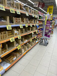 Вывеска со всех сторон о круглосуточной работе магазина – по факту прям на двери указано с 8 до 23. Подстава. Хоть бы убрали фальшивые вывески, вводящие в заблуждение. Когда заходишь у магазин, на тебя капает вода… Выпечка на открытом воздухе. Вся территория – антисанитария. Находиться внутри магазина неприятно, не говоря уже о брезгливости к продуктам. Если что и покупать – товары для дома: баночки, стекляшки, хозтовары, но никак не продукты. Плюсом отмечу наличие касс самообслуживания.
