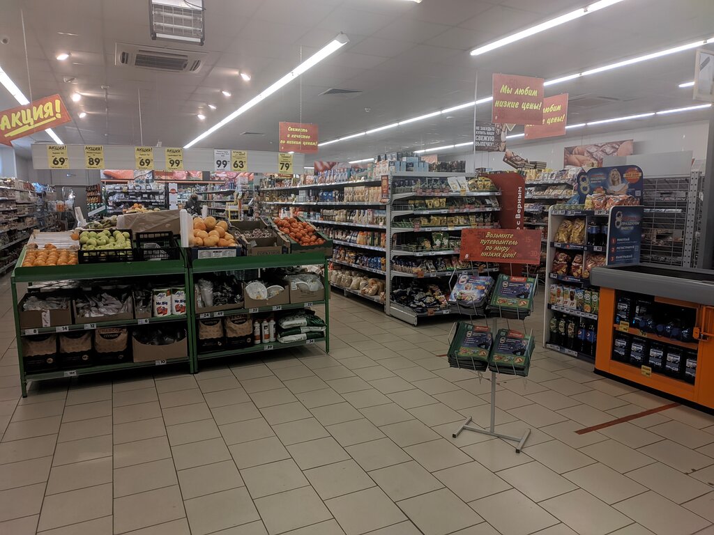 Чистота,хороший выбор товаров,все разложены по полочкам.Удобная парковка.Не знаю как,но когда я была очереди на кассах не было,что значит быстро обслуживают