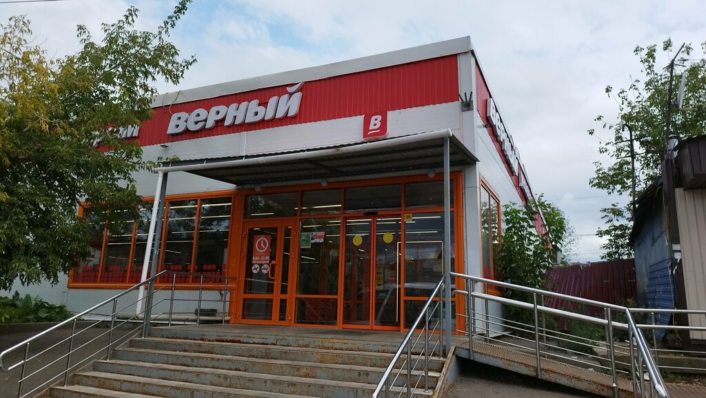 Ребенок стоял на улице с пакетом и удочками, пока мы ходили в магазин, подошел охраник к нему и начал его выгонять используя мат, так же стояло 2 продавца и курили прям на ребенка! На просьбу не курить в общественном месте и отойти за магазин, мы получили ответ, что это не наше дело и чтобы мы шли на три веселых буквы! Два продавца стоят на улице, когда в магазине очередь на кассе и работает одна касса.. отвратительное отношения к покупателям.. никому не советую посещать именно данный магазин! По мимо этого отзыва, так же написала на официальном сайте магазина «Верный»