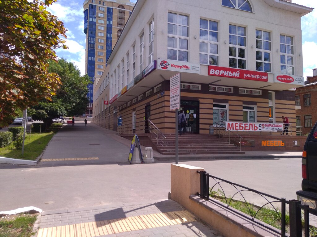 В данном здании находится магазин Верный, есть потрясающее кафе Андриана, в котором по субботам проводят тематические вечеринки. Это уникальный формат, очень весело и круто, всем однозначно рекомендую. За небольшую стоимость вас накормят, напоят и развлекут, еда отменная, программы всегда разные, ведущая просто мировая! Приходите, не пожалеете! Помимо этого в здании есть бассейн для маленьких детей, стоматология , салон красоты, ателье, валдберриз, фехтовальный зал, черлилинг зал, также джампинг, канго. Есть психолог и преподаватель по курсам английского , кондитерская и йога студия.