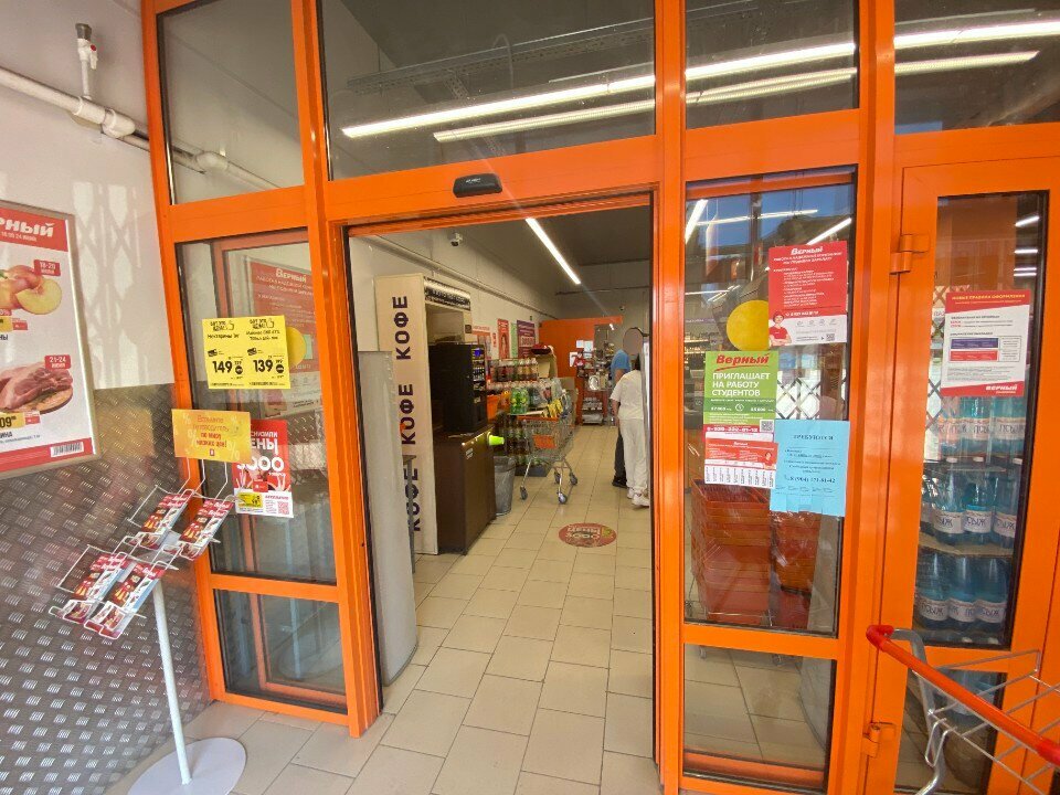 Хороший магазин! Да,здесь ассортимент поменьше,чем в большом Верном,но базовый набор нужных продуктов купить можно. И цены на ряд товаров даже чуть пониже. После того,как съехал соседний магазин,здесь стало меньше народу,но от этого и лучше - в магазине всегда есть все,что нужно