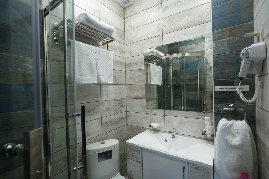 Отель расположен удобно недалеко от главной площади, от вокзала минут 10 ходьбы. Рядом много столовых, кафе, ресторанов и кофеен. Была в отеле с 11 по 17 августа в улучшенном премиум номере с одной двуспальной кроватью. Номер был расположен на 2-ом этаже, На 4-ом располагался номер моих друзей с балконом, тоже очень уютный, но комната чуть меньше за счёт балкона. Номер ровно как на фотографиях. В прихожей настенная вешалка с несколькими крючками, тумбочка. Над входной дверью расположен кондиционер, очень мудрое расположение, т.к. не дует на кровать и можно спокойно спать с включенным. Посторонних запахов, шума при его работе не было. Комната большая, но ближе к окну столб, судя по всему несущий, но жизни и комфорту это не мешает. Окна высокие, шторы тюль и ночные блэкаут. Кровать огромная матрас удобный, никаких торчащих пружин и т.д. не было. Белье белоснежное. С двух сторон от кровати тумбочки, светильники. В комнате ещё есть стол с двумя стульями (видимо новыми, т.к. мягкие сиденья затянуты транспортной пленкой. Но я не сидела, поэтому не смутилась :)). Есть ещё комод в одном отсеке которого спрятали мини-холодильник, в другом - посуда ( тарелки, ножи, вилки, стаканы, штопор). Телевизор на стене напротив кровати, работал нормально. В номере были халат, тапочки, одеяла. Ванная комната нормального размера: душевая кабина, огромная раковина, фен (отлично работает) и унитаз. Порадовала чистота, большое количество крючков, не приходилось ломать голову куда вещи повесить. В ванной были одноразовые пакетики геля для душа, шампуня, мыла и зубные щётки с пастой. Гели, шампуни и мыло пополнялись. Полотенца (три) менялись ежедневно. Убирали номер так же ежедневно. На ресепшене всегда был администратор. Но не обошлось без масленой ложечки дёгтя: плохая звукоизоляция. Ну или мне просто не повезло с соседями. Мягко говоря мало удовольствия проснуться в 6 утра от громкого "Рота - подъем!" :) :) :) Но это перекрывается другими плюсами. Когда вернусь в Ессентуки в первую очередь буду рассматривать именно этот отель