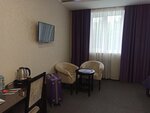 Симпатичный, приятный, современный, аккуратный, небольшой отель. Прожили тут неделю. Все было достойно. Персонал вежлив и внимателен. Завтраки хорошие. Можно и поужинать. Уборка номеров своевременна. В отеле светло и чисто. Благодаря цветовому решению интерьеров есть ощущение не то, что бы прям праздника, но чего-то позитивно-романтического. Единственный минус-шум заходящих на посадку или взлетающих самолётов (аэропорт Минвод совсем рядом).