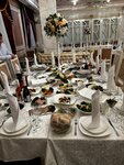 23.08.2025 праздновали здесь свадьбу. Гостей было около 30 человек, выбрали малый зал, чтобы всем было уютно. Когда приехали после ЗАГСа - все было уже накрыто. Блюда разнообразные (предварительно мы выбирали меню с администратором), скатерти и салфетки чистые, были так же тканевые салфетки, чтобы не испачкаться. Все очень чисто и аккуратно. Очень понравилось обслуживание официантов, все приносили и уносили быстро, следили, чтобы у гостей не было грязный салфеток и пустых блюд. Так же понравилась обстановка, зал очень нарядный, повсюду лепнина, а стены украшены росписью.