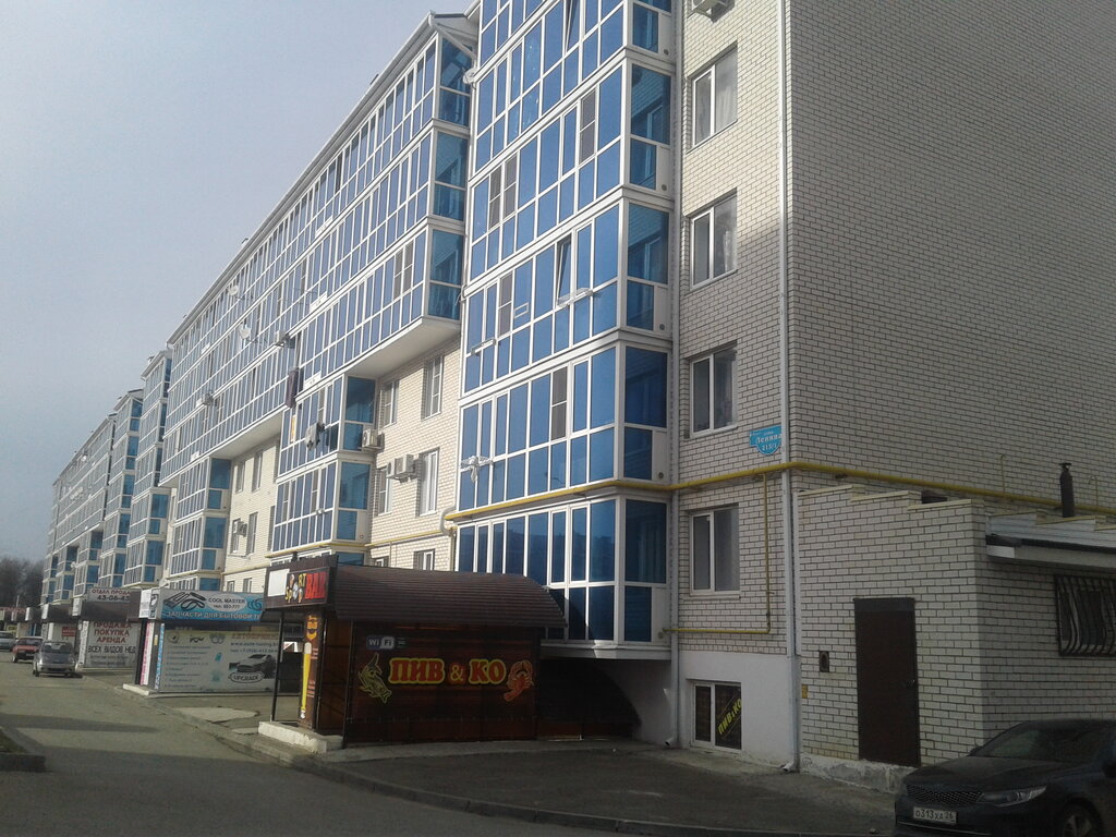 Жилищный комплекс, 10 этажей, на первых этажах - торговые залы, почта, парикмахерские. 1,2,3 комнатные квартиры с зимним садом, лифтом, но центральным отоплением и подогревом воды от крайтеплоэеерго
