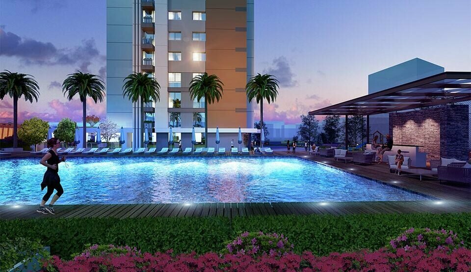 Quiet area! Convenient location! Very clean and peaceful complex! There is a decent gym and a cafe! Huge underground Parking, cars do not drive on the territory! Cool big pool