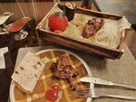 Cool cafe, very nice inside. I ordered a shish kebab, a beautiful serving on a wooden tray, the shish kebab is very tasty and juicy, the photo shows how it was brought.