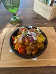 Место довольно симпатичное и демократичное, народу довольно много, в начале недели в будни вечером места были заняты все, и посетители менялись, т.е. приходили поесть-отдохнуть часа на 2-3. Сидели на днях там маленькой компанией на закрытой веранде. Очень уютный ремонт, обстановка теплая, тихая не навязчивая музыка, искусственные птички чирикают)), посуда современная, диванчики и стулья удобные. Цены примерно как везде в ресторанах среднего уровня, выбор блюд неплохой, но не все в меню есть в наличии. Нашему именинника дали скидку на счёт и вынесли торт со свечками. Приятно! Официантки вполне внимательные. Горячие блюда как гювеч, хинкали, чёрный бургер были вкусные и свежие. Супы так себе, на троечку. В нарезке была "задумавшаяся" колбаса, которую заменили. Чай как сиротская моча((, лучше бы обычный рассыпной заваривали, чем эти дебильные пакеты на всю компанию. Салат был очень большая порция и очень сытный. В общем, блюда надо выбирать тщательно, что-то вкусное, что-то средненько. В целом выбор блюд есть и место уютное . Особенно в тёплый сезон, выход на улицу отдельное удовольствие.