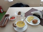 Очень хорошее кафе! Красивый интерьер и вежливый персонал! Заказал 30.01.2023 комплексный обед, в него входили: щи со сметаной (вкусно, но очень горячо), картофельное пюре и зраза с грибами (пюре густое и вкусное, зраза из свинины с очень хрустящей панировкой), салат "Весна" (это огурцы, помидоры и перец с солью), лимонный напиток (можно поменять при желании на чай, но не советую, т. к. напиток безумно вкусный) и 2 ломтика свежего чёрного хлеба. И всё это обошлось мне в 11, 48 бел. руб. Всем советую!
