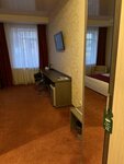 Гостиница хорошая, на 5+! Современная. Кофе в аппарате при входе. Есть утюг, микроволновка на 2этаже.на каждом этаже кулер. Чисто в номерах, всё что надо -есть. Номер просторный. Есть холодильник, кондиционер, что в жару обязательно, телевизор. Кровати удобные. Утром -завтрак. Рекомендую брать. В него входит :каша, блинчики с начинкой +шведский стол. Можно брать без ограничений кофе, сливки, масло, джем, йогурт, хлопья с кефиром, можно сделать тостик, сырок треугольный, ветчина в нарезке. Очень удобное расположение. Рядом остановка, если хотите проехать, например, до места сбора экскурсионных автобусов. Пешая доступность до центра, речного вокзала.