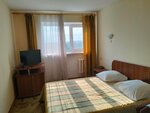 An interesting hotel. People with disabilities should not stay here. The room is beautiful and clean. It is well furnished, comfortable furniture, very good perfumes. There is everything you need. There is a kettle, dishes, refrigerator, air conditioner, TV. In my opinion, there are not enough sockets in the headboards above or next to the bedside tables. And..., again, in my opinion, the pillows and the blanket are too heavy and harsh. And also, there is no shower curtain. The food is Soviet, something like a complex, in the 90s it would have been almost gorgeous... Although you won't be hungry. Well, again, the famous "There are many of you, but I am alone!"... I must say that the hotel can only be a transit hotel for 1 night... Naturally, this is also not the ultimate truth....