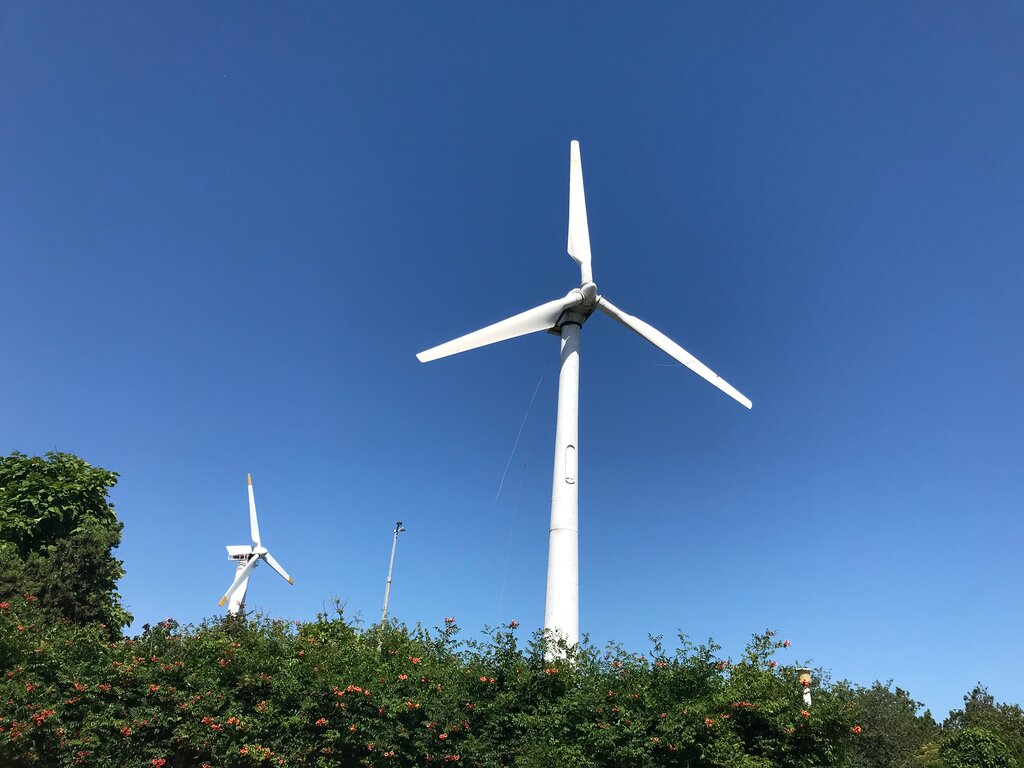Ветряки не такие большие, как в Волгоградской области, но самый смак подойти поближе к ним и посмотреть и потрогать руками))) Очень интересные штуки. Один побольше, другой поменьше. Подойти можно близко, находятся на территории пансионата "Искра".