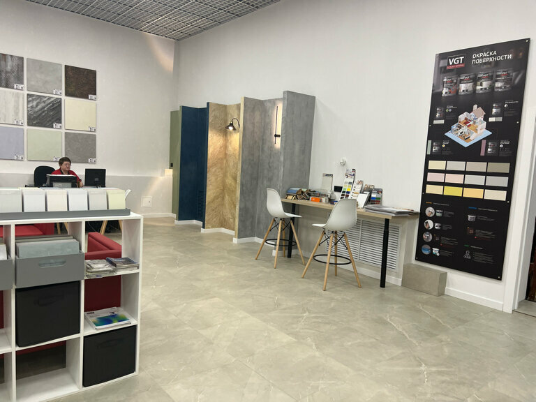 Покупал у них артбетон и краску, хороший магазин, богатый выбор, очень интересные примеры штукатурок на стенах. Можно посмотреть в больших объемах, а не маленький фрагмент.
