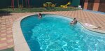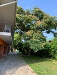 Гостевой дом очень понравился. Отдыхали здесь не первый раз. Расположен в самом центре, а это и магазины, рынок и столовые в двух минутах ходьбы. Хозяева отзывчивые, всегда на связи. В номерах хорошая мебель и матрасы отличные. А коц то веки спали с удовольствием без боли в спине. Бассейн всегда чистый, даже ночью, включают подсветку. Шезлонгов много. Каждое утро у Евгений у бассейна с пылесосом и сочком. В сан узлах жидкое мыло, туалетная бумага. Даже в местах общего пользования хорошая туалетная бумага, средство для мытья посуды хорошее. На кухне есть вся посуда, два больших холодильника, микроволновая печь, две газовые плиты, электрический чайник. Веранда для приема пищи большая. Много столов. Стоянка авто закрытая на территории. Всё под навесом, который окутам виноградником. Виноград разных сортов и если отдыхать в августе, то очень вкусно. Так же есть инжир. А когда мы останавливались здесь в конце июня, то черешня просто огонь. Так же есть баня. Мы парились. Обязательно вернёмся сюда