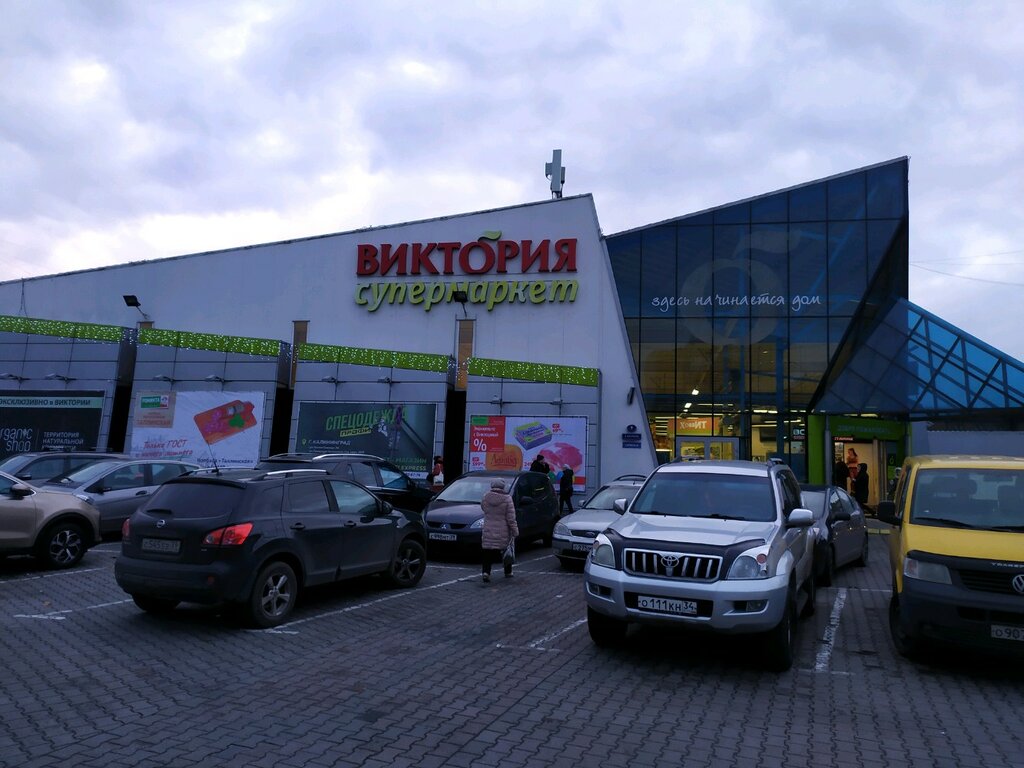 Богатый торговый центр, большой выбор товаров, отживой рыбы до косметики, единственное в выходные дни очереди у касс, видел,что устанавливаются дополнительные кассы, имеются кассы самообслуживания. В центре работает кафе, аптека и другие киоски. Мне понравилось посещать ВИКТОРИЮ!