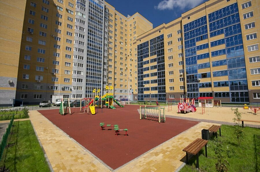 Двор. Детская площадка. Недостатки: Парковки практически нет. Зелени мало. Деревьев нет совсем. Летом гулять с ребёнком на детской площадке как на сковородке. Из достоинств только шаговая доступность остановок общ транспорта и продуктовые магазины.