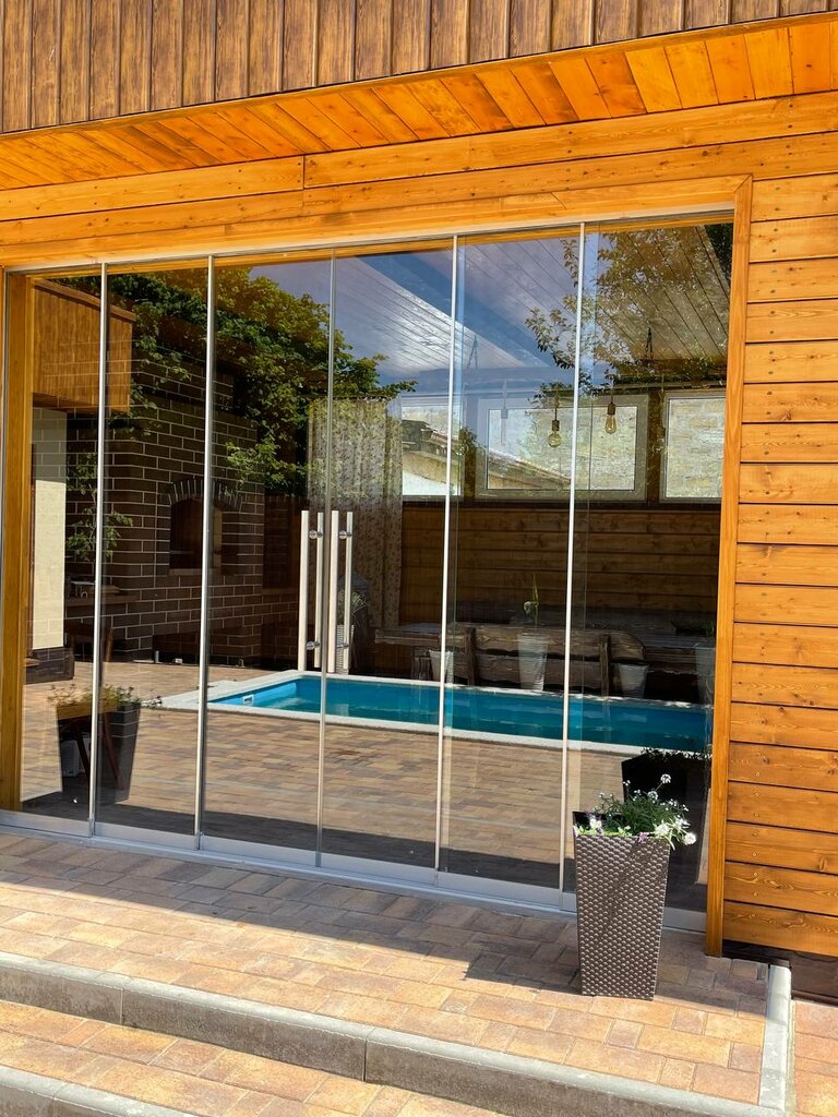 бассейн , купель , мангальная зона крытая отдельная комната. Комната отдыха тоже хорошая с большим столом и кухней все необходимое есть ,все отлично. Есть отдельный душ. Немного подвела сама сауна , темно в ней . Печка электрическая поэтому запретили подливать воду на камни . За счёт этого только не получили нужный эффект . Оплата 1500 в час до шести человек . Второй раз попали в эту сауну и оказывается тут есть домик с сауной для ценителей пара , печка на дровах кайф , так же имеется отличная комната отдыха,кухня холодильник чайник душ туалет . Много фотографий не будет потому что отдыхали компанией всем понравилось. Отдельное чудо бассейн с подогревом на улице