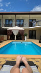 Отель чисто переночевать, есть кровать, душ, туалет, холодильник, тв в номере. Все средства гигиены берите с собой, фен тоже. Из неприятного бронировали номер с 1 большой кроватью, заселили с 2 односпальными, сказали других номеров нет и не будет в эти дни. Чистота была на среднем уровне, пол грязный, пыль. Хорошо что были чистые полотенца и простыни. Одеял также нет в номере. Администратор вежливо общалась, все рассказала и показала что нужно. Бассейн маленький, только детям побаловаться.