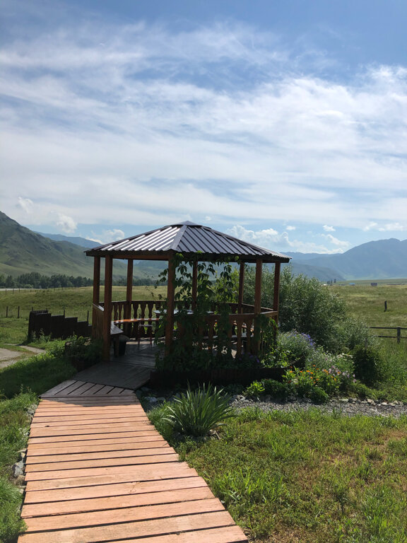 Потрясающая база по многим параметрам: 1. Отличное расположение. Вид с террасы выше всяких похвал. Находится близко от Чуйского тракта. Недалеко есть небольшие магазины и кафе. 2. Комфорт. На базе всё сделано с душой, есть всё необходимое для отдыха. 3. Чистота. Очень ухоженная и чистая территория, где приятно находиться. Видно, что хозяева вкладывают душу в данное место❤️ Спасибо большое за прекрасный отдых!