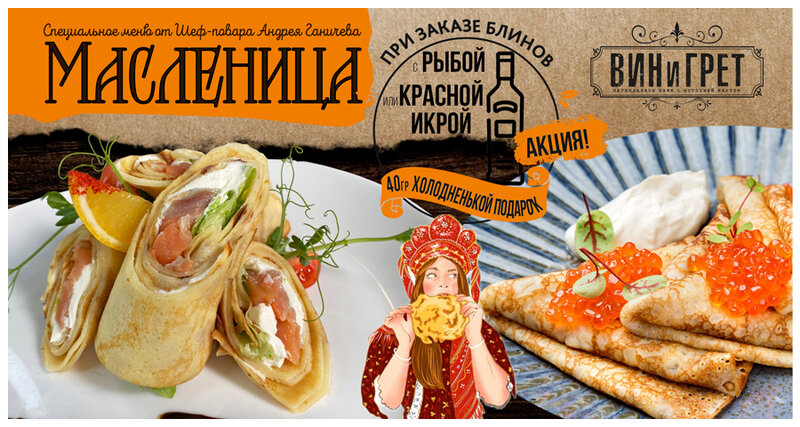 Масленица в ВИНиГРЕТ - холодненькая в Подарок к блинам с икрой/сёмгой! Нежные блины с красной икрой или с сёмгой шеф‑посола — и в Подарок хо...