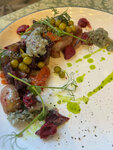 Отдыхали на празднике огурца. Ресторан находиться на территории гостиницы, недалеко от музея. Понравилась кухня и интерьер. Очень красивое оформление блюд. Персонал доброжелательный.