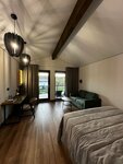 Это место как из фильма "Хороший год". Сочные краски зеленых холмов с виноградниками, играет музыка, в бокале разливается жидкое золото ароматного Совиньон Блан и переливается в лучах солнца. Хочется непринужденно танцевать и наслаждаться красотой Жизни. Красивые аккуратные виллы напомнили мне бунгало на Бали, потому что вокруг них высажены необычные деревья и растения всевозможных цветов. Глаз радуется ухоженности и ярким краскам. Газон перед виллами как ковер, на нем хочется расположиться и устроить пикник, или сесть на землю и помедитировать. Отдельное впечатление - это сауна. Во время парения можно наслаждаться видом из большого панорамного окна во всю стену с видом на холмы, а вечером видно луну и звезды. Понравился также дегустационный зал в стиле лофт. Антуражные столешницы из слэба, приглушенный свет, большое количество музыкальной аппаратуры - можно классно провести вечеринку, узнала что место сдается в аренду и вмещает около 60 человек. Вдохновила дегустация вин винодельни Валерия Логинова. Я уже была знакома с вином Пино-Гри, а теперь на меня произвело неизгладимое впечатление серия вин Каберне-Совиньон. Ароматика и глубина этого вина поражает, это вино для особых случаев. Также хочу отметить сервис и атмосферу, которую создает хозяйка пространства этого камерного отеля - Татьяна. Ненавязчивость, внимание к деталям и любовь к своему делу. В этом месте хочется находиться как можно дольше. В идеале приезжать на неделю в отпуск, чтобы можно было прогуляться по местным красотам, пройти по эко-тропам в Абрау-Дюрсо, доехать до моря, посетить уютные рестораны. В магазине при винодельне купила крафтовые паштеты, оказалось что они продаются во Вкус Вилл и теперь я могу их приобретать в Москве! Вкус нежный, только натуральные компоненты. А конфитюры и варенья без сахара - особое удовольствие. С таким прекрасным вином и в таком чудесном месте мне было очень вкусно, тепло, душевно и безмятежно. Рекомендую к посещению.