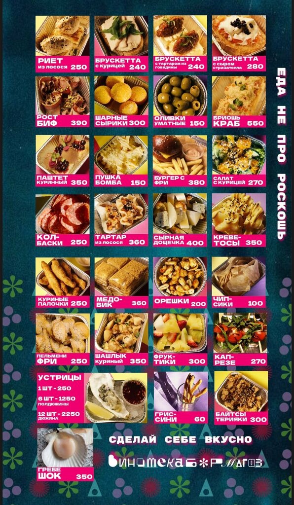 Впечатления специфические. Была дважды с разрывом в неделю на вечерних тусовках. Плюсы: приятная атмосфера, классный интерьер, большой ассортимент вин. Минусы: музыка будет или прекрасной, или отвратительной — смотря какой из двух диджеев вам попадётся, нет особого выбора классических сухих итальянских и французских вин (ну, или мне плохо подсказали, что тоже минус), по пятницам и субботам толкучка внутри страшная. На мой взгляд: лучше уж сделать ограниченное количество мест/платные билеты/очередь, чем наблюдать битвы за бочку. И придумайте что-то с бокалами: пьяные гости постоянно их бьют, обливая окружающих. Закажите из противоударного стекла, я не знаю… В общем, за атмосферой можно вернуться, но заведению ещё есть над чем работать.