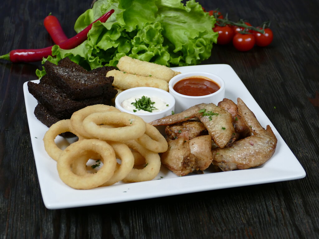 Откройте для себя вкус изысканного блюда. Нежное филе куриного бедра, маринованное и приготовленное на углях до золотистой корочки, подаётся с аппетитным картофелем по-французски и пикантной маринованной капустой. А ароматный томатный соус добавит бл