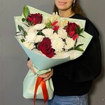 Огромный букет ромашек удивит и точно надолго запомнится. Хризантема - очень стойкий цветок, будет долго радовать и напоминать о Вашем комплименте!
