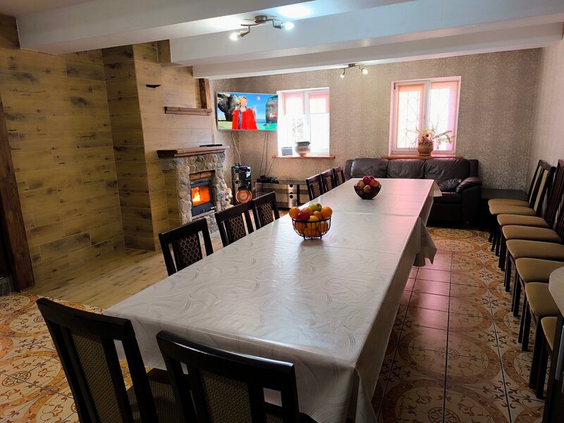 Everything is great. Lots of space, lots of rooms, you can accommodate a large company. A large bececa on the street. Barbecue with all accessories. A sauna with a swimming pool is also worthy of attention. There is karaoke and billiards in the house for leisure. Comfortable clean beds. On the downside: the owners need to pay attention to street lighting at night. Visibility is poor. On the differences of paths and steps, you can get pretty screwed up.