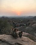The Virupakshi Temple is highly revered by Hindus and is dedicated to the God Shiva, and is also the largest and oldest temple in the history of Hampi. It existed even before the fall of the Vijayanagara Empire in 1565. It is said that the mentions go back to the iivth century. In the temple itself, as in many Asian countries, you need to walk without shoes. I strongly recommend taking socks with you for this purpose, so that you can safely throw them away and not worry about how many people trampled on these stones before you. Lakshmi, an elephant, lives on the territory, helps the owner to earn a living, there are a lot of people who want to take pictures with her. We arrived at the temple at dawn. It is located in a picturesque place. From the top of a small mountain at its foot, you can watch the dawn, the awakening of life, listen to music coming from the temple, and watch the monkeys.