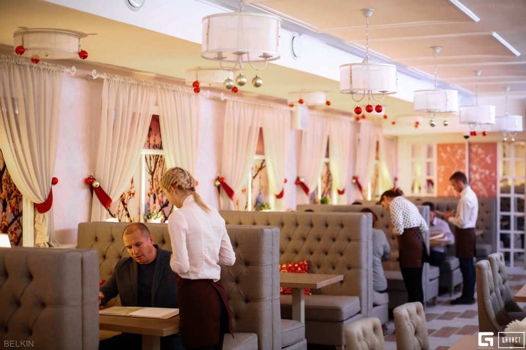Была там в 2021 году, в июне, когда была свадьба у родственницы. Персонал был вежлив, быстро всё накладывал и забирал. Интерьер красивый. За одним столом усаживались около 6 человек, может и больше. В зале и в уборной было чисто. Расположение довольно удобное, остановка "улица Афанасьева", рядом есть магазины санар, магнит, магнит косметик, калач и чуть подальше пятерочка. Зал находится этажом ниже что-то типо подвала т.к. как заходишь,то спускаешься сразу вниз. Кондиционеры есть, работают хорошо так что летом было очень комфортно в зале,когда было на улице жарко и душно.