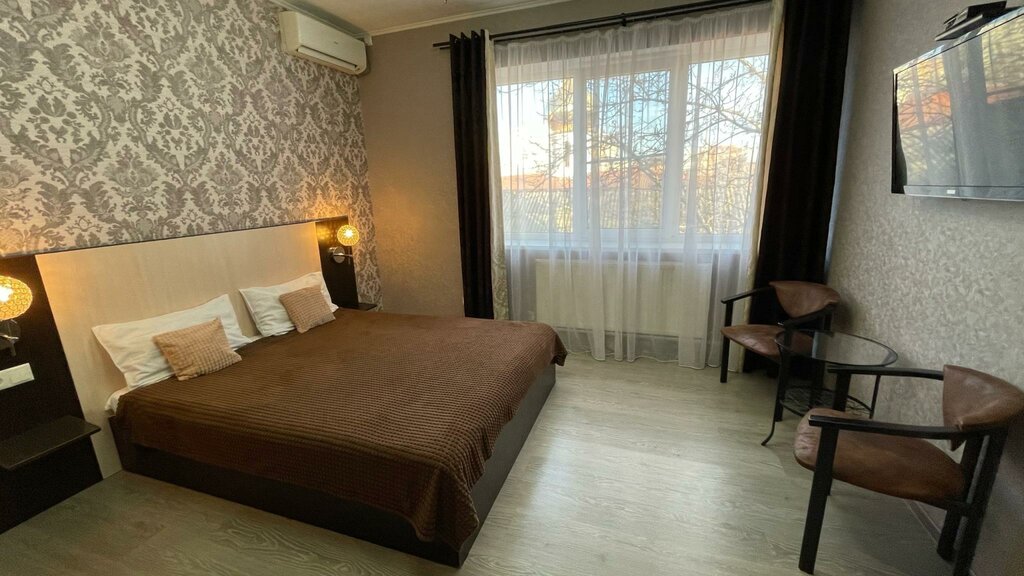 В номерах чисто, соотношение качества и цены услуг хорошее, у нас в номере есть плазма, на которой имеются все возможные подписки для просмотра фильмов и сериалов. За относительно небольшую цену в номере имеются холодильник, чайник, кондиционер, хороший Wi-Fi и удобные диваны ( 2 двухместных) - по моему мнению номер оправдывает свою цену.