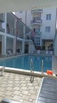 Начну сразу с минусов. 1) Нашли полудохлого таракана в тумбочке размером где-то с мизинец. (Фото вставить не разрешил Яндекс) 2) Номер давно не видел ремонта (туалет смывал через раз, обоженные чем-то стены, дырявая шторка в ванной и как будто покусанные шторы на балкон). Кондиционер, вроде, работал, но достаточно сильно шумел. Мы им не пользовались. 3) Я беспокоюсь за свою безопасность и круглые дверные ручки формата "щелкни - дверь закроется" мне уверенности в безопасности не вселили. Их сломать очень просто, а двери картонные. 4) Не было теплого одеяла (обычно кладут в отелях и гостевых домиках), не было мыла, пары-тройки пакетиков шампуня/геля (это не так важно, конечно, но все же неприятно) 5) Вонючая кухня. Как будто до нас в ней готовили что-то настолько тошнотное и блевотное, что даже зайти погреть чайник было тяжелой задачей, не говоря уже о том, чтобы что-либо готовить. Из плюсов - красивое оформление, бассейн и не такое далекое расположение от моря и автовокзала. Кровать не скрипела, выглядела в целом добротно. Постельное было чистым, но я особо не рассматривал.