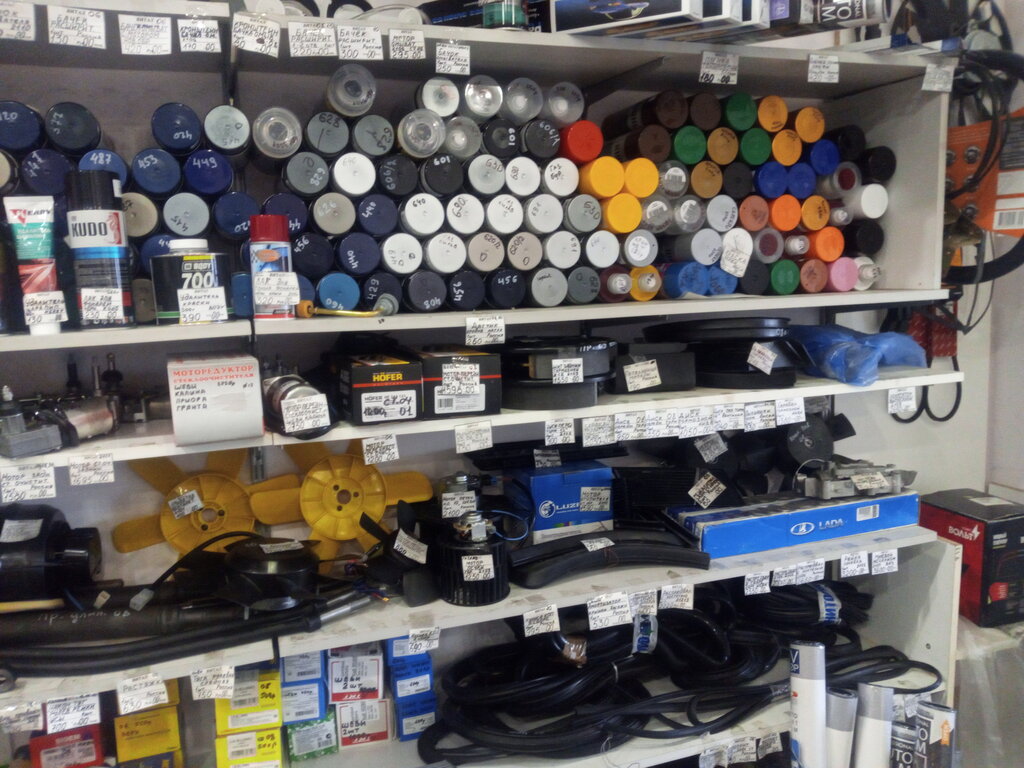Небольшой магазин автозапчастей для отечественных автомобилей. Большого ассортимента нет, в наличии лампочки, масла, крепеж.