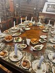 Ресторан русской кухни. К сожалению не пришелся по вкусу. Очень обидно, шли по рейтингу и сразу после аэропорта по прилёту, очень голодные. Просто ожидания не оправдались.. А как говорят, "Ожидания болельщиков это проблемы болельщиков.."))) При всем видимом антураже русской избы или дома, так же видно кучу мелких не доработок в зале. Например на быструю руку покрашенные лаком столы, на которых когда-то лак не до конца просох и на нем теперь навечно остались следы от донышков бокалов. Или вперемешку с самоварами, утюгами и керосиновыми лампами горшки с китайскими иероглифами.. К чему они? Ну или если взять потолок, попытка сделать эффект состариного бревна, не увенчался успехом(( Итог по интерьеру: задумка на 5, выполнение на 3. По персоналу.. Персонал приятный, старается, рекомендует блюда. Все хорошо. Кухня.. Честно сказать не очень.. Соотношение цена - качество не соответствует, цены сильно завышены.. Денег нам не жалко было, ну не по вкусу нам пришлось.. Еще раз вернуться не хочется...