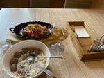 The waiter is a guy who is polite, smiling, attentive in his work. There are no complaints about the kitchen — we ate a lot of things from the menu, everything was delicious and satisfying. Careful serving of dishes. This is encouraging. The only thing that upsets is the contingent of people: there are parents with their whining children, always running around. They were often seen sitting with a beer or something stronger — right in the heat in the middle of the day they go out, spread out with a red face and a redneck look. And of course the local marginal party with a bottle of vodka and a candy))) That's horrible. You come to eat, but you never know: what kind of "it" lives there)))