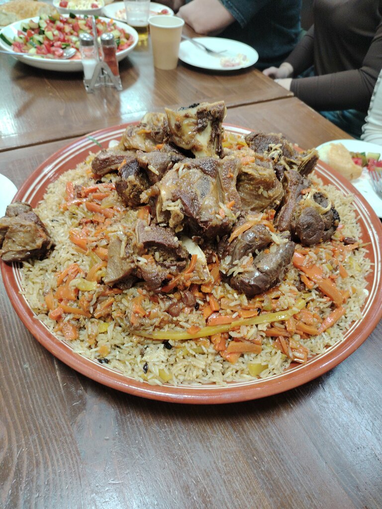 Еда вкусная, брали плов,манты и самсу. Вкусно,манты очень понравились. Но всегда очередь)цены нормальные,порции большие. Но это больше столовая…подносам лет сто уже,тем более они пластмассовые,выглядят ужасно, не приятно вообще их брать. Наверное,пора уже их заменить и обновить интерьер. Все же на дворе 2024 год