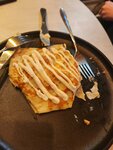 Уютное кафе, хотя к блинам отношусь скептически, но блины здесь меня покорили. Блин с морепродуктами это очень вкусно, заказывали пиццу , подача с картошкой фри прикольная, тесто воздушное. Ну и блинчик с вишней- это теперь мой фаворит. По напиткам брали детям лимонад - понравился, ну а латте халва выше всяких похвал. Единственный небольшой минус- это меню на обычных листах, но при входе висит информация, что в кафе техническое открытие. Официант рассказала, что открылись недавно, скоро будет красивое меню. Удачи и процветания! Вернемся еще и не раз.