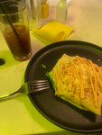 Больше не пойду в это заведение. Персонал безразличен к происходящему в кафе, стоят у бара, общаясь на своей волне. Меню просто 3 помятых испачканных листа А4, хоть раз в неделю можно новые печатать взамен испорченных. Заказал блин «Мега гриль», который оказался ужасным (1- сильный запах уксуса от разогретого кетчупа, которого было слишком много, как внутри, так и снаружи. 2- бекон резиновый и очень крупный, пытался разрезать, но это оказалось труднее, чем я ожидал.) и лимонад чистая газировка и немного сиропа. Единственный плюс - это интерьер т.к. свежий.