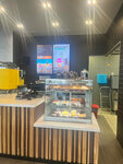 Уютное, чистое местечко, где быстро можно перекусить. Ребята все чисто одеты, вежливые, всё подсказали, рассказали. Видела как готовили мой заказ, всё быстро и аккуратно. Вкусно. Обожаю мороженое, его здесь большой выбор, не удержалась, взяла сразу два. Заезжайте и заходите, не пожалеете. А, вот ещё что, здесь готовят завтраки, я не пробовала, но судя по заказам посетителей впереди меня, они пользуются спросом.