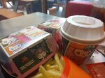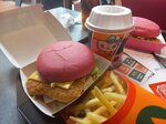 Для такого большого количества гостей в заведении очень чисто, столы убирают быстро. Заказ ждали на удивление не долго. Могут быть проблемы с посадочными местами, но нам повезло. Опять-таки из-за большой проходимости, картошка и котлета были горяченные, с пылу-жару. Зашли мы исключительно за розовым бургером Хеллоу Китти, сам бургер довольно обычный на вкус, кроме цвета ничем не вречатлил. А вот мороженое было вкусным, клубничного топпинга не пожалели!