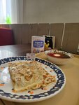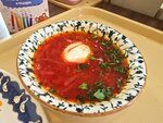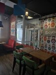 Была во Вкусно блин на Октябрьском проспекте второй раз и оба раза всё понравилось. Отличное место, чтобы сходить с семьей и покушать. Есть возможность приобрести комплексный обед, но, к сожалению, выбор напитков в них очень ограниченный и мне не удалось выбрать там что-то для себя. Интерьер яркий, много элементов, которые цепляют взгляд, есть 2 зала, в одном из которых есть детская комната. В уборных присутствует приятный запах и достаточно чисто. Блинчики вкусные и нежные, начинку можнл выбрать на свой вкус. Блинчик лазанья и с яицом и луком мне понравились, а с мясом и рисом не очень. Фарш был расположен неравномерными кусками в блинчики, а с рисом никак не совмещался. Но сам фарш бы вкусный, но лучше выбрать что-то другое. Из супов пробовали борщ и овощной крем-суп. Борщ мне не очень понравился, но я вообще отношусь скептически к обычным супам, но моему партнёру он понравился. Крем-суп оказался вкусным, к нему также подали гренки, с которыми стало ещё вкуснее. Минусом оказалось то, что температура супов была достаточно низкой, поэтому мы были не полностью довольны. Персонал и чистота на достойном уровне, за гостями убирают быстро и достаточно качественно, кассиры приветливые и вежливые. Хотелось бы, чтобы заказ готовили быстрее и на поднос складывалось еду не в разброс, а так, как заказывали гости. Нам же пришлось потом менять местами еду. В целом само кафе хорошее, атмосфера приятная, а еда вкусная. Недочёты бывают везде, но этому месту, вполне заслуженно можно поставить 5 звёзд.)